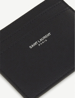 Saint Laurent Branded Pebbled Leather Card Holder Selfridges Com